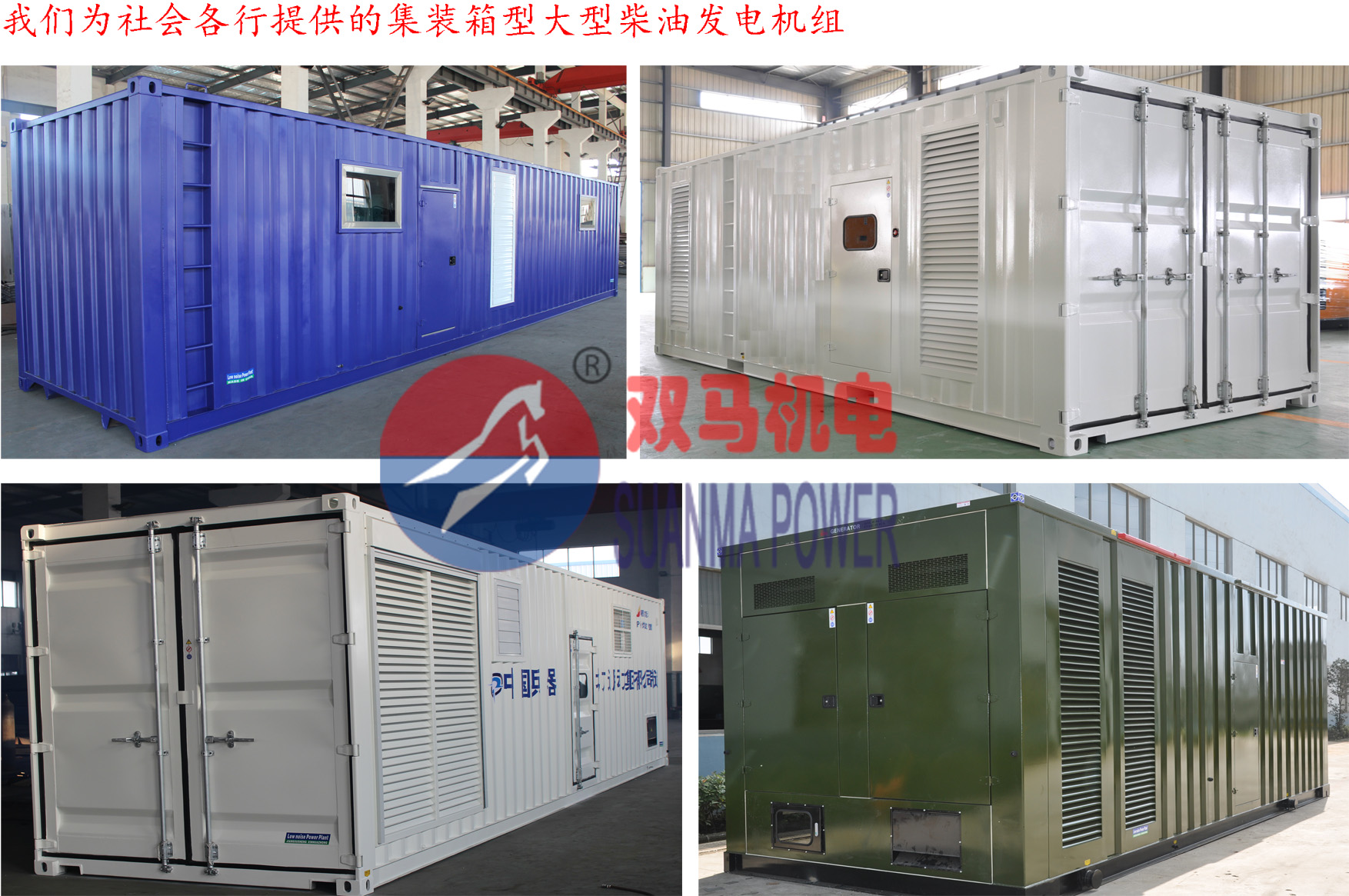 集裝箱型柴油發電機組一般適用于大功率柴油發電機組使用,正常功率600KW以上的發電機組可以配備,主要用于野外長期作業,我公司生產的集裝箱型柴油發電機組同時滿足以下要求: